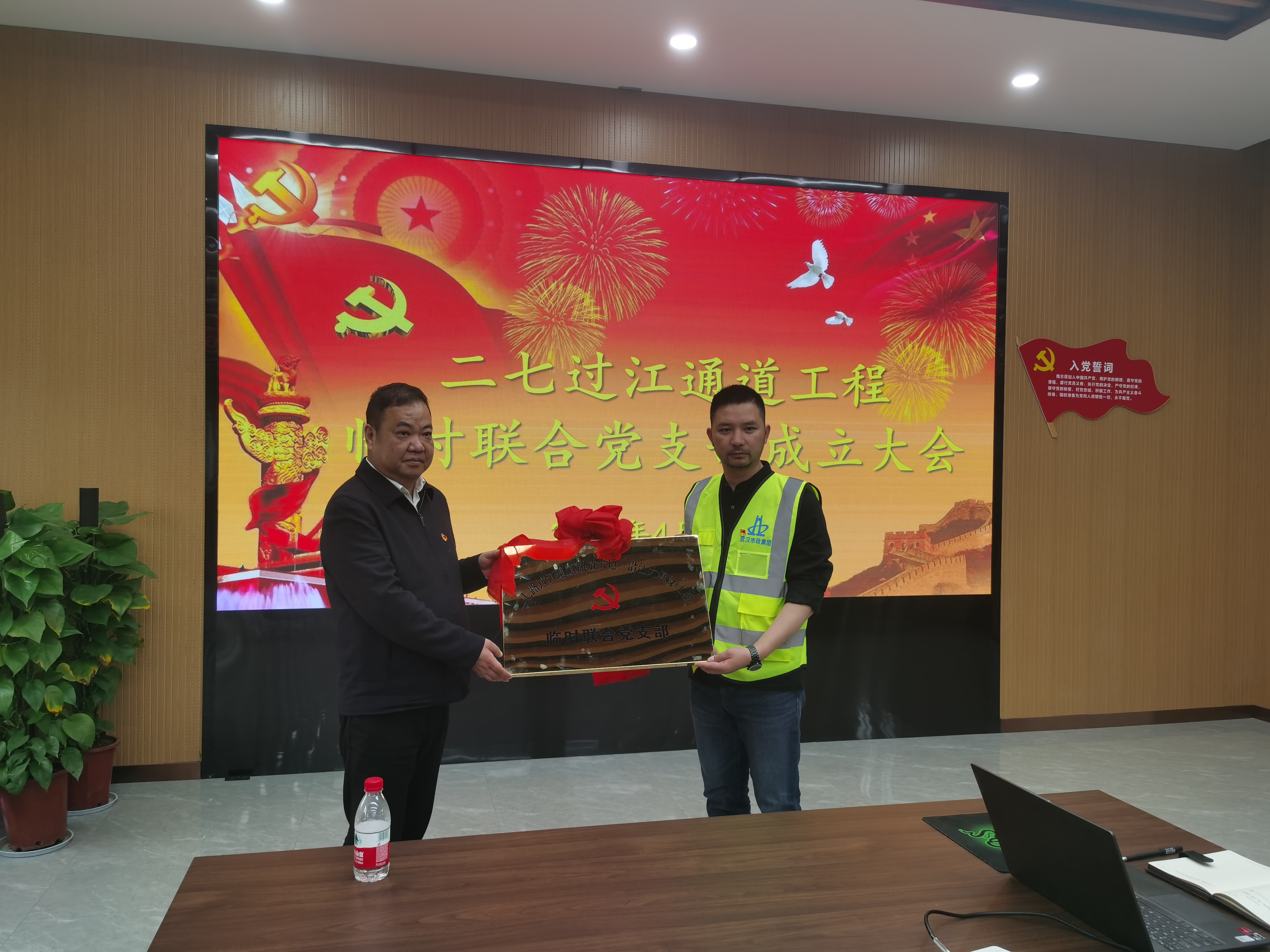 4月16日,兩湖隧道(東湖段)工程、二七路過江通道(解放大道—沿江大道)工程先后舉行臨時(shí)聯(lián)合黨支部成立大會(huì)。公司總經(jīng)理、黨委副書記艾詩明參加相關(guān)活動(dòng),并分別為兩個(gè)工程的臨時(shí)聯(lián)合黨支部授牌。