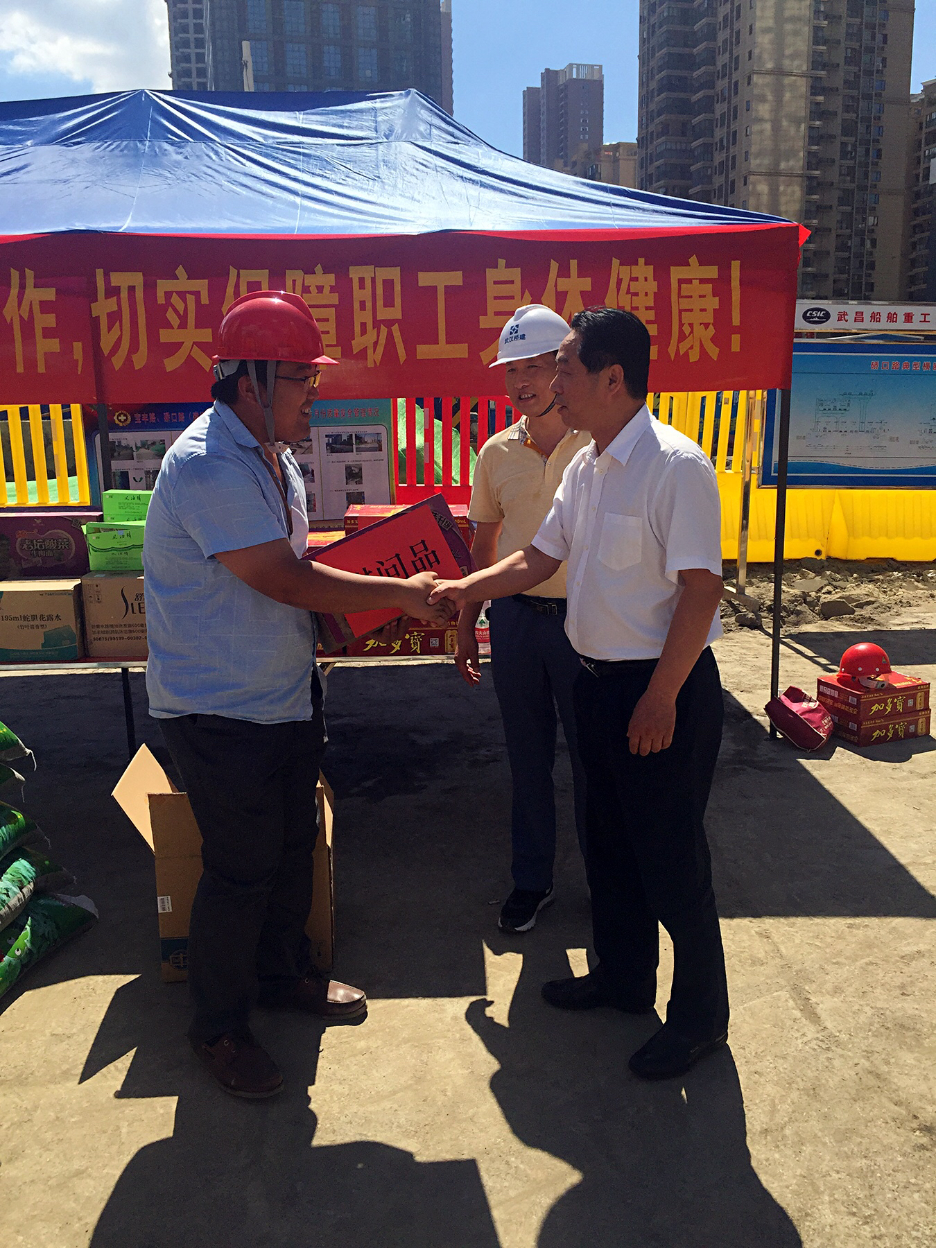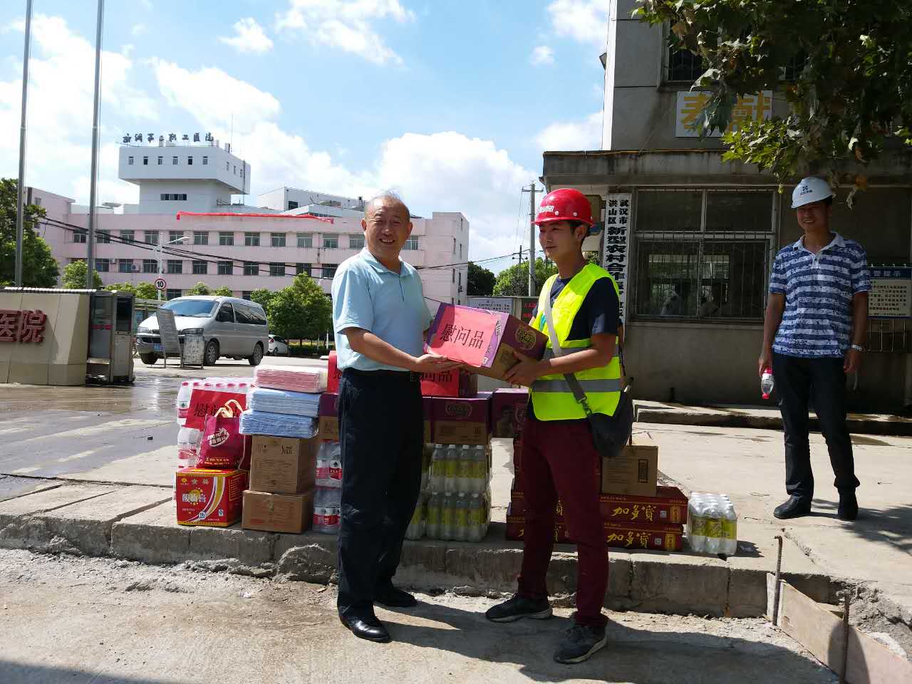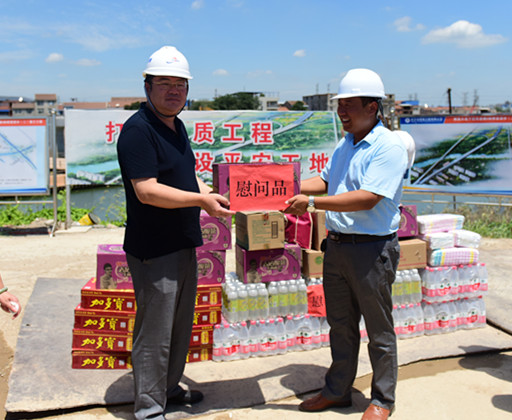 進(jìn)入盛夏,節(jié)節(jié)攀升的氣溫讓江城體會(huì)到了驕陽(yáng)的威力。為將關(guān)懷和慰問(wèn)及時(shí)傳遞給一線員工,719日、20日,市城投集團(tuán)公司領(lǐng)導(dǎo)金國(guó)發(fā)、林馳、楊楓分別來(lái)到我公司負(fù)責(zé)代建的漢江大道寶路、青化路、解放大道下延線等項(xiàng)目現(xiàn)場(chǎng),向奮戰(zhàn)在一線的工作人員送去慰問(wèn),并將高溫慰問(wèn)品送到員工手中,讓一線員工們?cè)诳崾罡惺艿搅艘唤z舒心的涼意。
