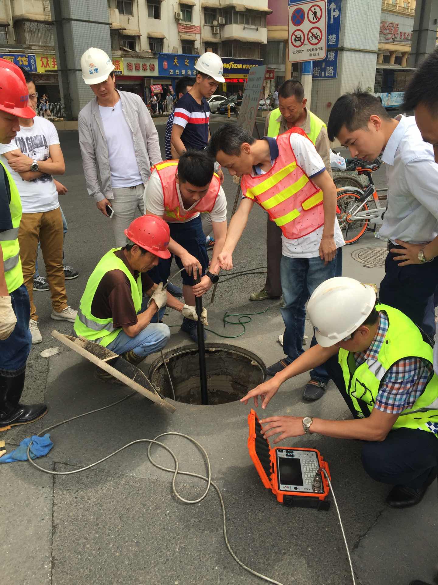 在工程現場,李總協調武漢排水公司采用專業(yè)檢測設備對雄楚大街沿線的雨污水管進行排查,排查完畢后,李總要求項目參建各方做好汛期前各項準備工作,及時清理、疏通雨污水管道,針對易漬水路段要制定有效的應急預案,保障汛期雄楚大街正常通行。