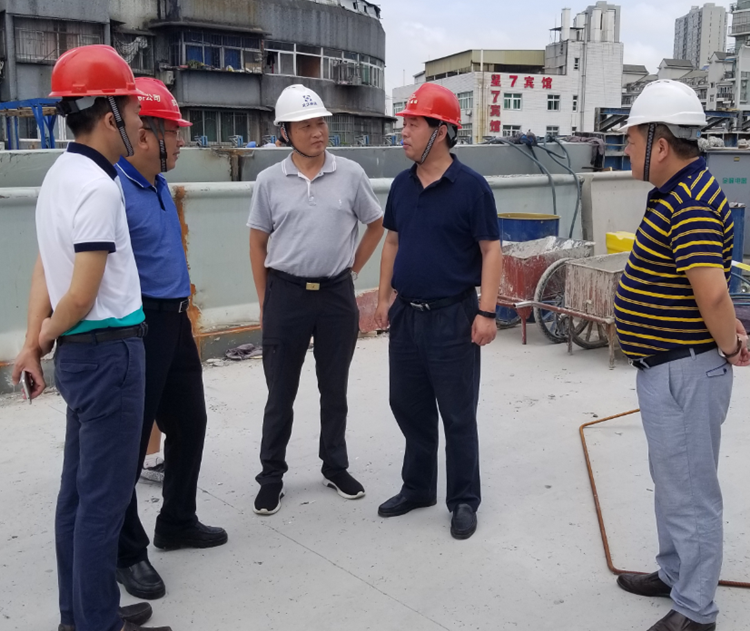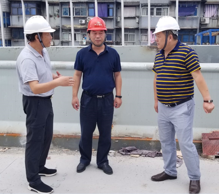 市城投集團(tuán)公司項(xiàng)目部相關(guān)負(fù)責(zé)同志,橋建集團(tuán)董事長朱明剛、總工程師鄧文輝,道橋公司董事長魯有月、副總經(jīng)理?xiàng)钪鞠閰⒓恿藱z查活動(dòng)。
