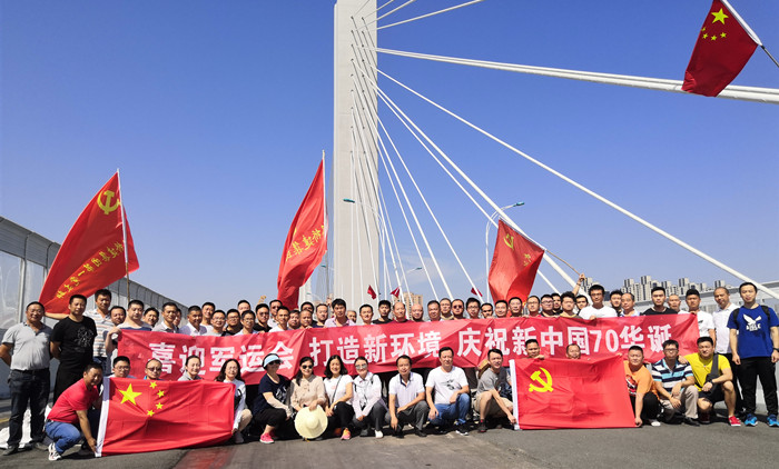 楊泗港快速通道青菱段項目通車在即,10月1日上午,橋建集團(tuán)組織廣大干部職工赴楊泗港快速通道青菱段開展現(xiàn)場收尾清潔暨觀摩青菱段跨鐵路斜拉橋橋面ECO混凝土+ SMA13瀝青攤鋪活動,并在項目現(xiàn)場為祖國母親七十華誕送上美好的祝福。