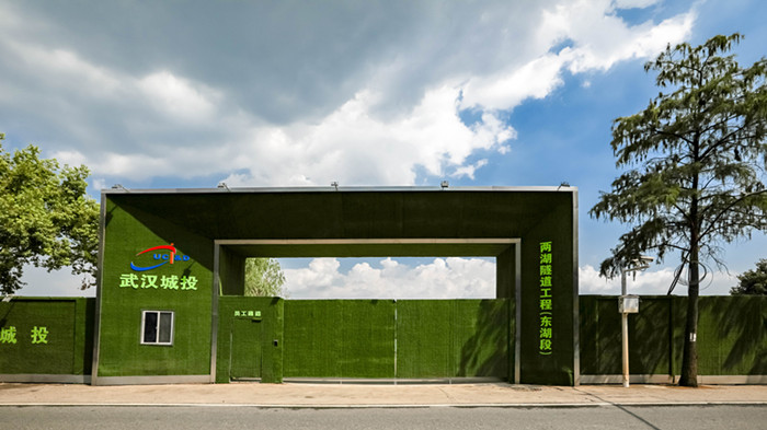 在兩湖隧道東湖段項(xiàng)目現(xiàn)場(chǎng),一塊塊高達(dá)3米的生態(tài)草坪圍擋,將整個(gè)施工現(xiàn)場(chǎng)嚴(yán)絲合縫地圍攏起來(lái),點(diǎn)綴在圍擋上的各種花花草草,不僅扮靚了周邊道路,也讓整個(gè)圍擋充滿(mǎn)生機(jī)與活力。“聊為湖上飲,一縱醉后談”,在這些生態(tài)圍擋上,一幅幅簡(jiǎn)明山水詩(shī)畫(huà)穿插其中,融情于景,與大美東湖渾然一體。