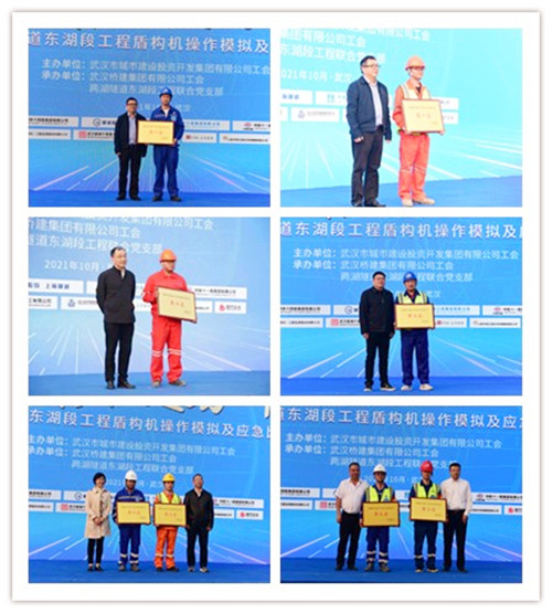 首先進行的盾構(gòu)機操作模擬是針對兩湖隧道盾構(gòu)作業(yè)的特點精心設(shè)計的比武項目,參賽選手在盾構(gòu)機工作臺上進行仿真模擬操作,在規(guī)定時間內(nèi)完成參數(shù)調(diào)整、啟動推進及日常操作任務(wù)。據(jù)悉,這是市城投集團為隧道盾構(gòu)施工專門準備的高科技培訓(xùn)設(shè)備。通過此次技能比武,使兩湖隧道施工人員有機會獲得身臨其境的體驗,快速掌握隧道施工技術(shù),為工程建設(shè)做好預(yù)演。在隨后的基坑應(yīng)急搶險比武中,每支參賽隊伍派出了8名選手參賽。該項比武以模擬基坑突發(fā)涌水事件為背景,每支參賽隊伍8名選手互相配合,齊心協(xié)力完成砂袋裝填及搬運、鉆孔作業(yè)、電焊作業(yè)及消防處置等流程。各參賽隊伍動作規(guī)范、處置迅速,高質(zhì)量完成了應(yīng)急搶險考核任務(wù)。最終,經(jīng)過選手們激烈的角逐以及評委們嚴格的評審,兩個項目分別產(chǎn)生了一等獎一名、二等獎一名、三等獎兩名。出席活動的領(lǐng)導(dǎo)對獲獎單位進行了表彰并頒發(fā)獎牌。