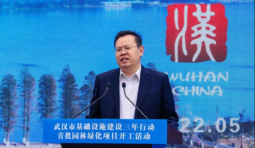 2022年5月18日上午,武漢市基礎(chǔ)設(shè)施建設(shè)三年行動首批園林綠化項目開工活動在東湖風(fēng)景區(qū)落雁景區(qū)改造項目現(xiàn)場舉行,市委副書記、市人民政府市長程用文宣布開工并講話。