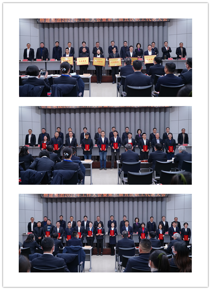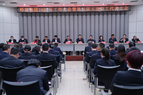 2022年1月21日下午,橋建集團組織召開2022年工作大會暨第三屆五次職工代表大會,全面總結(jié)公司2021年各項工作,分析當前面臨的形勢和任務,安排部署2022年重點工作。集團公司領(lǐng)導、本部中層干部、所屬單位領(lǐng)導班子成員和年度先進集體和先進個人代表、集團公司職工代表參加了會議。公司黨委委員、監(jiān)事長葛應林主持會議。
