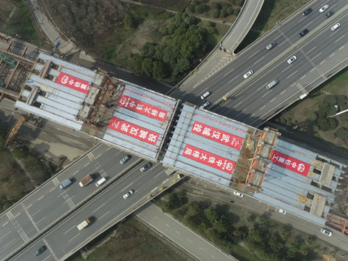 沙洲大道快速化改造主線跨三環(huán)線頂推完成后