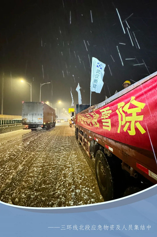 2月3日深夜,市城投集團公司動員所屬單位緊急開展我市重點路段鏟雪除冰“大會戰(zhàn)”。其中,三環(huán)線主要聯(lián)系我市各大工業(yè)組團及中小型經(jīng)濟開發(fā)區(qū)、新發(fā)展區(qū),承擔著春節(jié)物質(zhì)運輸保供的重要功能。按照部署,橋建集團負責三環(huán)線北段(長豐橋漢口段起點至天興洲大橋漢口段起點)共約26.1公里的鏟雪除冰任務(wù)。
